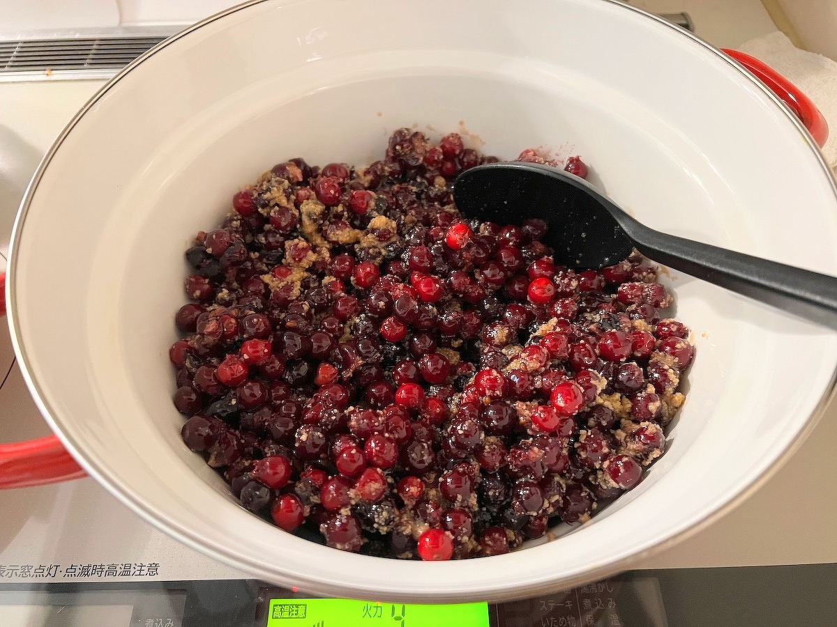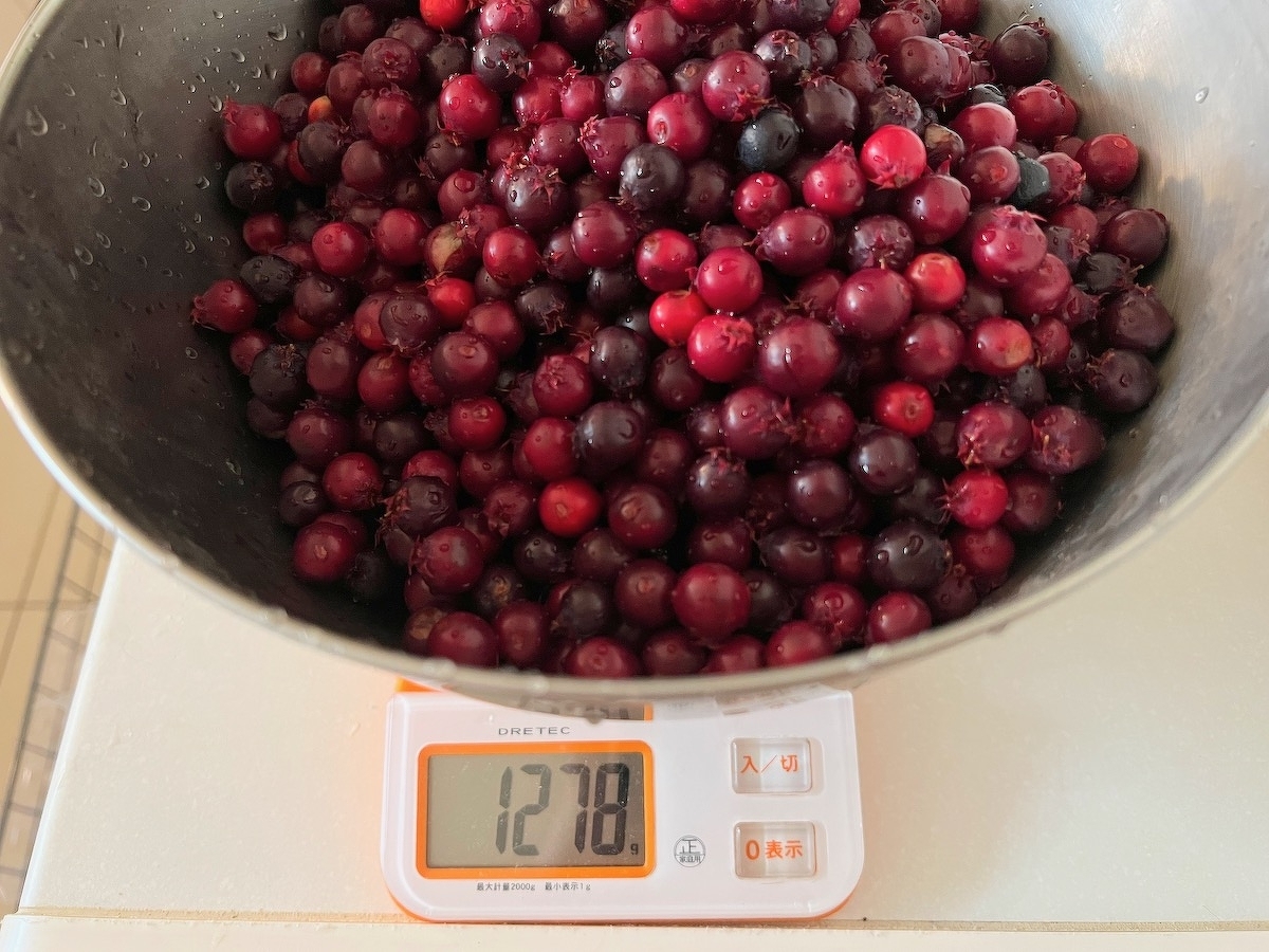 - 砂糖(私はきび砂糖) ジューンベリーの重量の30%