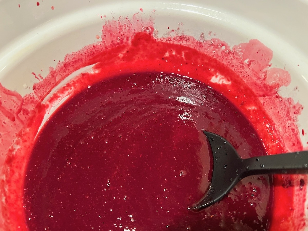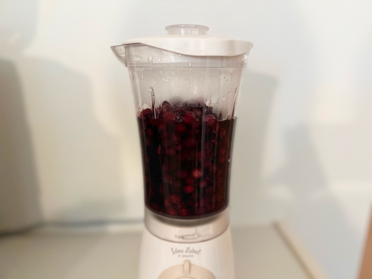 そのため裏ごしをして種を取り除くのですが、ミキサーにかけることで皮や果肉がピュレ状になり裏ごししやすくなります。