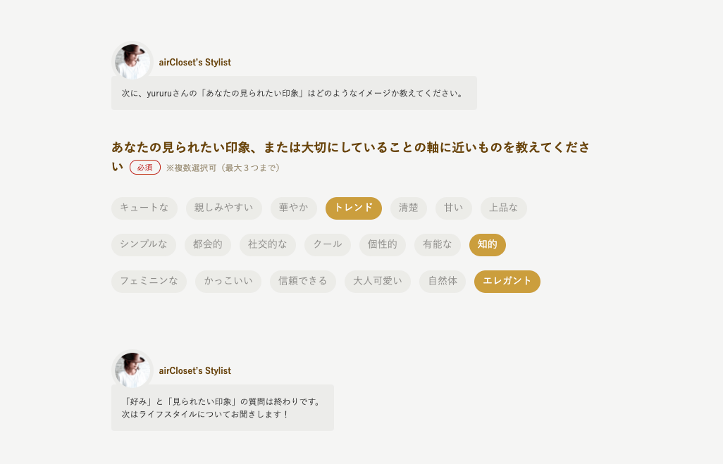 - 想像していた以上に、体型や好みや着るシチュエーションを細かく聞いてくれて「合わない服が届く」ことへの不安が減った