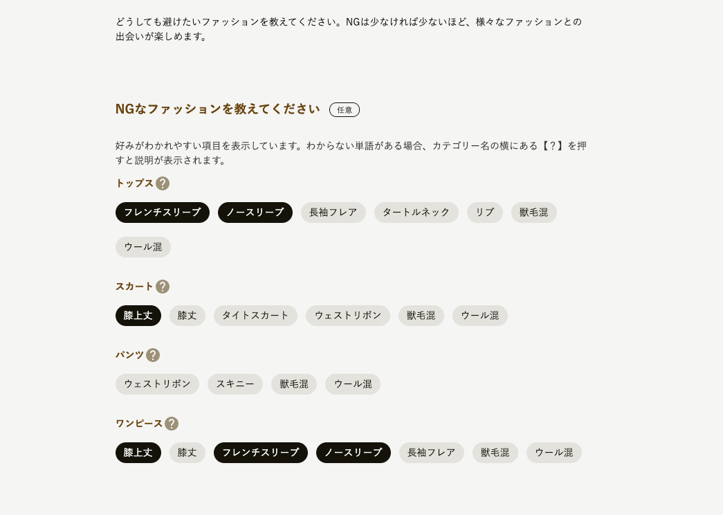 続いて「NGなテイスト」を登録します。