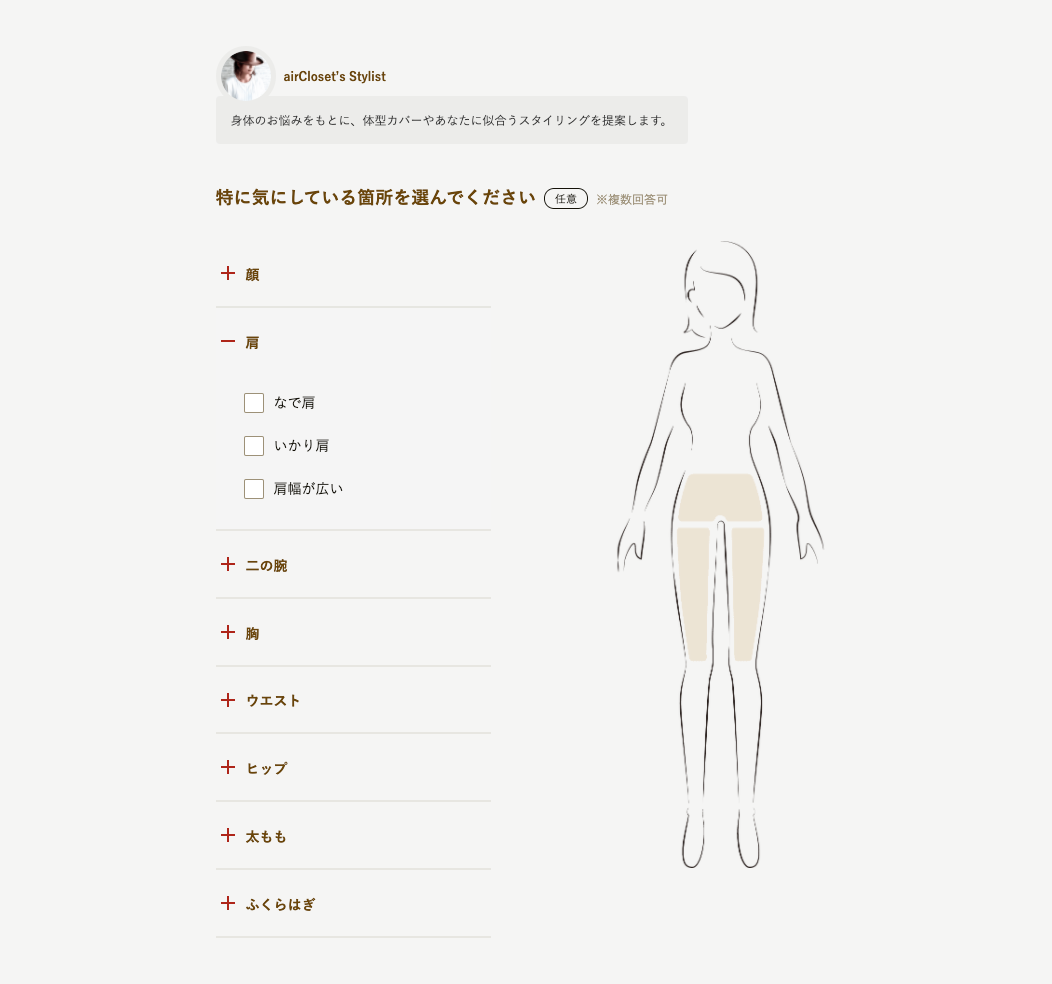 「身体のお悩みをもとに、体型カバーやあなたに似合うスタイリングを提案します」