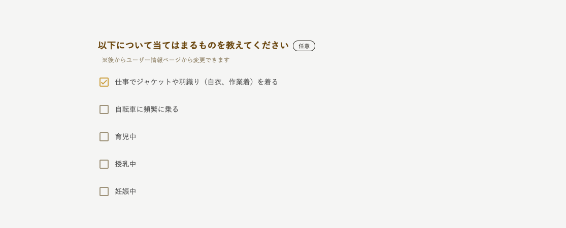 自分に当てはまるものがあれば選択します。