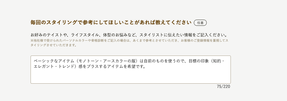 スタイリストさんに伝えたいことを記入する欄です。