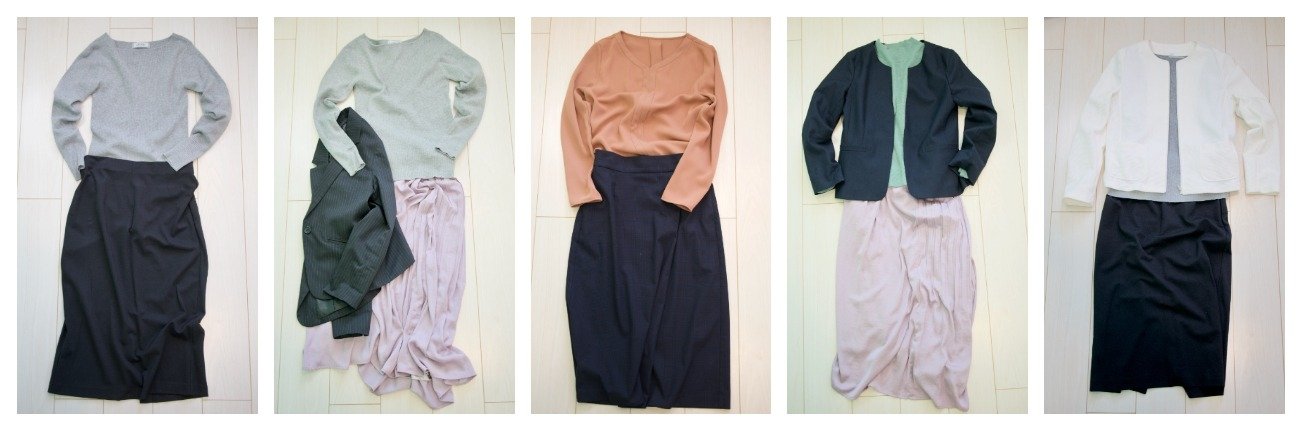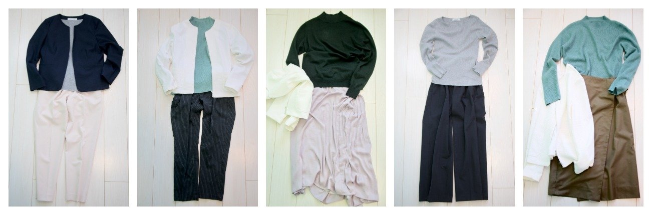 もらったアドバイスを元に、平日5日間×2週間、レンタルした服を着回しました。