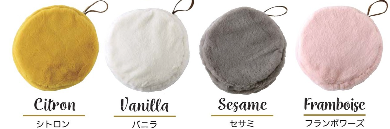 ふわふわのエコファーでくるまれたマカロン形のあったかクッションカイロです。