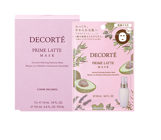 森のバターといわれるほど栄養価の高いアボカドをはじめ、植物や果実から抽出したオイルを配合したコスメデコルテの乳液「プリム ラテ」がたっぷりしみ込んだシート状の乳液マスクです。