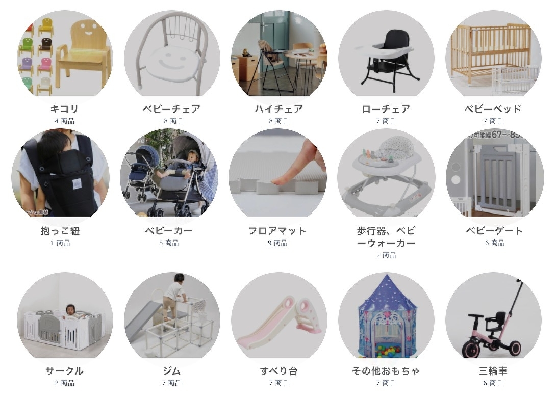バシネットの他にも、下の画像のようにベビーベッドやベビーカー、抱っこ紐など様々なベビー用品を販売されている専門メーカーです。