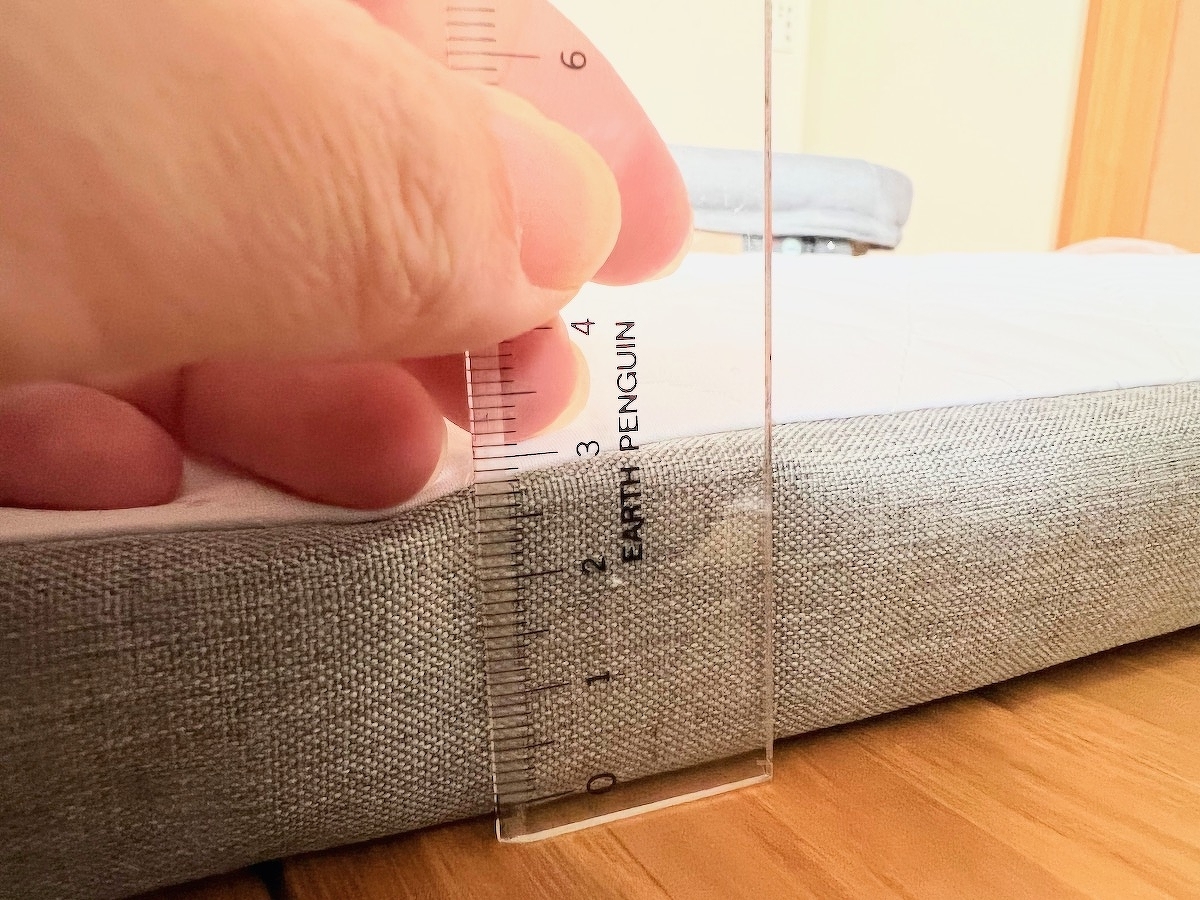 実際に届いたマットレスの高さを物差しで測ってみたのが上の画像です。