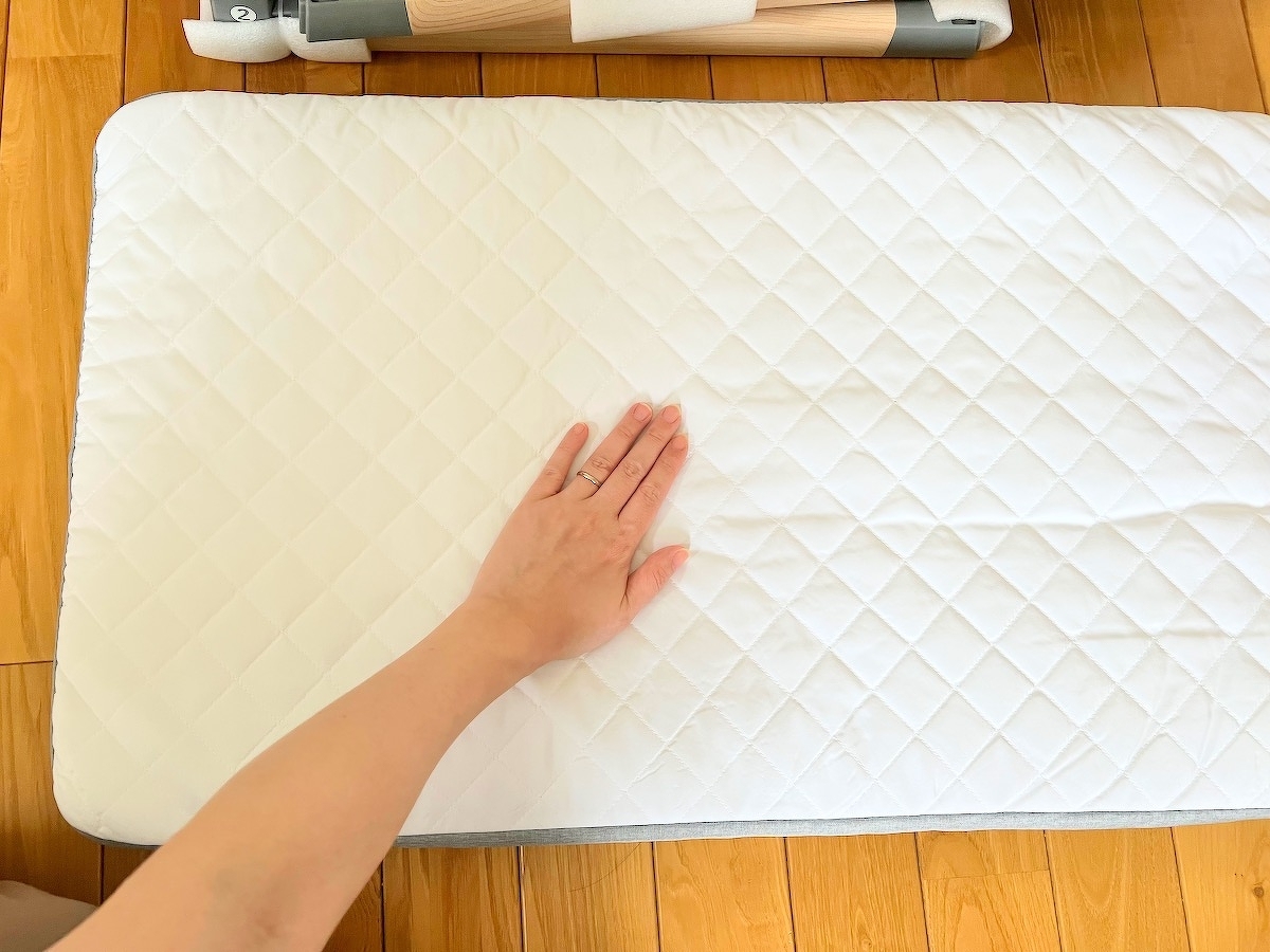 気になるマットレスの硬さですが、手のひらで押しても弾力があり沈み込みにくい、固めのマットレスでした。