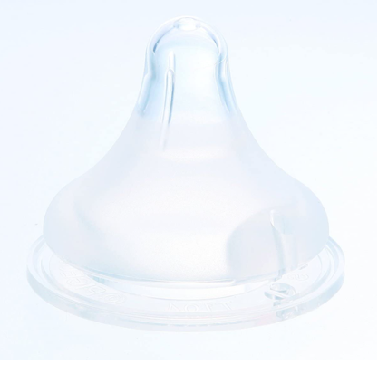 独特の形の乳首は、赤ちゃんが母乳を飲むための経験ができるように工夫されており、吸い穴のサイズが小さいので吸う力を育むことができます。さらに、乳首部分も固めに作られており、より吸う力を必要とします。