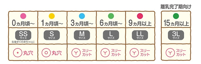 | 付属の乳首 | 新生児~・SSサイズ(丸穴) |