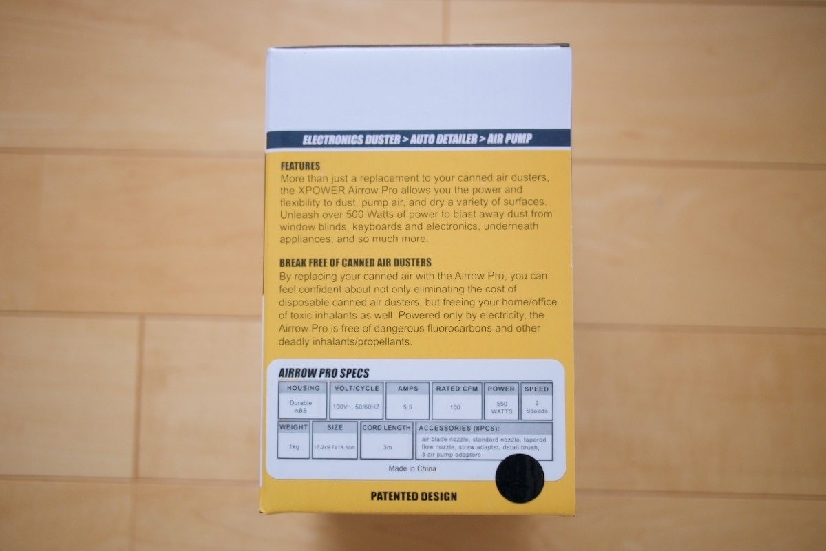XPOWER社の公式ページに書いてある、電動エアダスターA-2の特長をまとめました。
