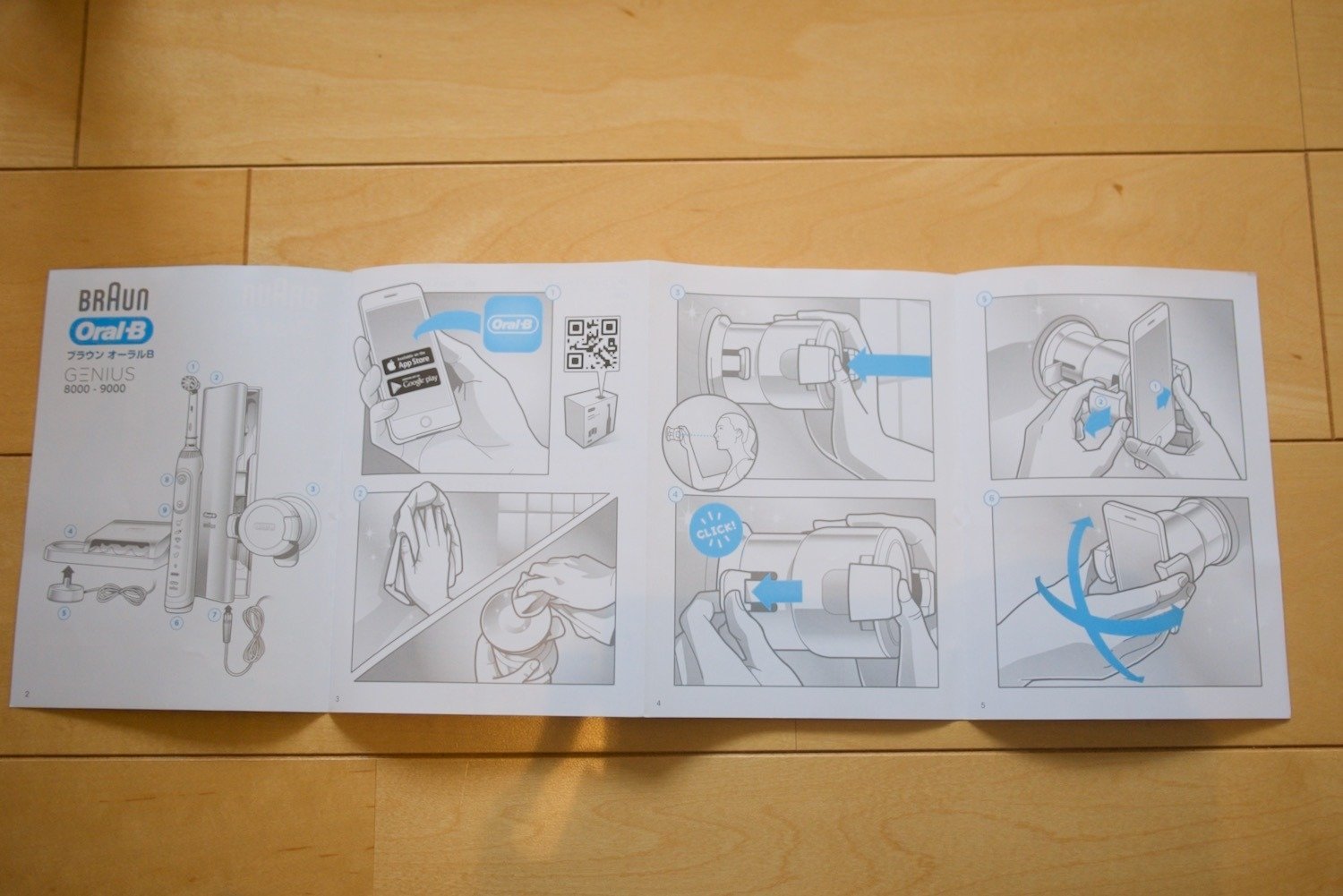 小さい方の説明書は「スタートガイド」で、スマートフォンホルダーの使い方などが絵で説明されていました。