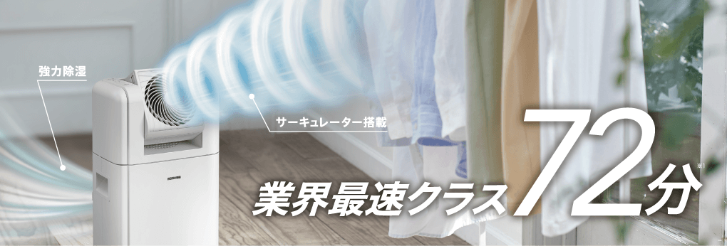■衣類乾燥時間72分(自然乾燥に比べ乾燥時間を1/8に短縮)、室内干し対策に最適です。