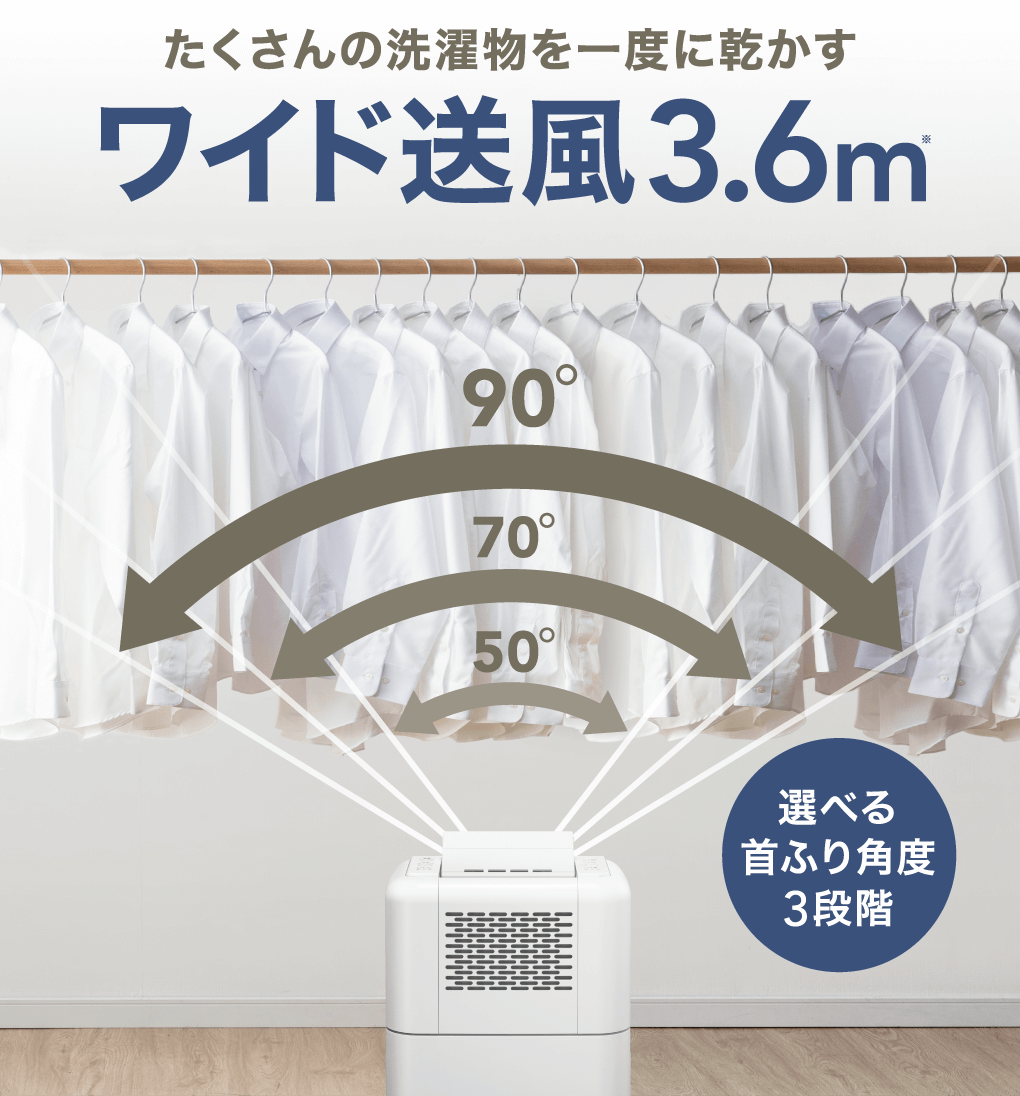 部屋の隅々まで送風ができれば、より早く乾燥できそうですよね。