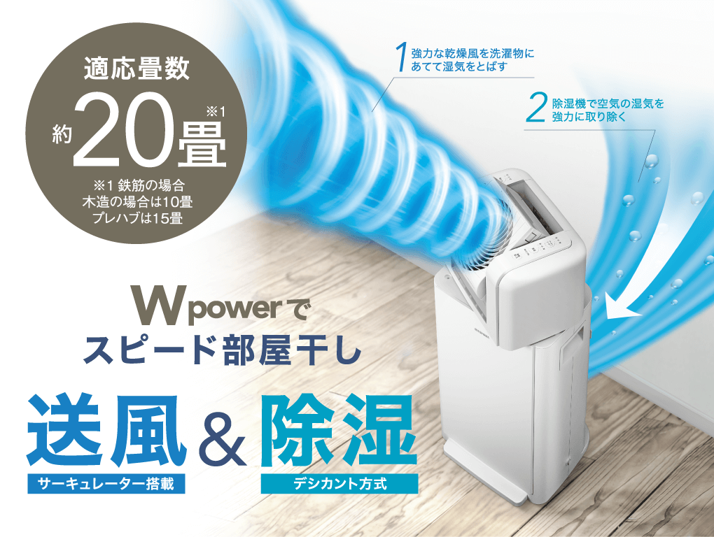 - 強力乾燥風+除湿でスピード乾燥