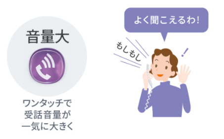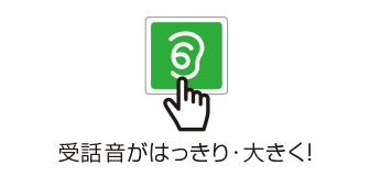 「音量大ボタン」を押すと受話音量が大きく、高音域を強調したはっきりとした音になります。