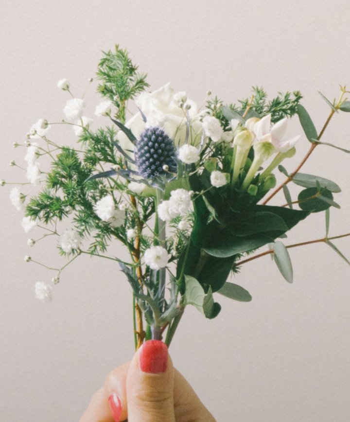 | 実際の花 | バラ(白) | かすみ草 | ユーカリ | エリンジウム | ルスカス | ブルニア |