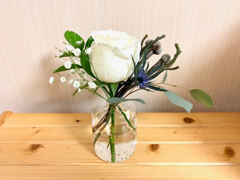- すぐに飾れる茎の長さで届くので、バランスを考えて茎を切る手間が不要