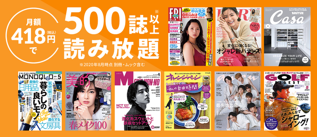 月額418円(税込)で雑誌が読み放題になるサブスクサービスです。