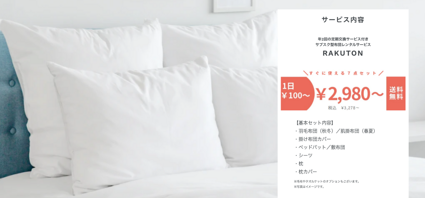参考リンク:布団のサブスクサービス「RAKUTON」