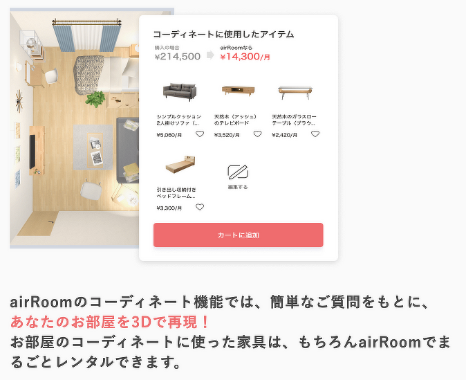 参考リンク:家具・インテリアのレンタルサービス【airRoom(エアールーム)】